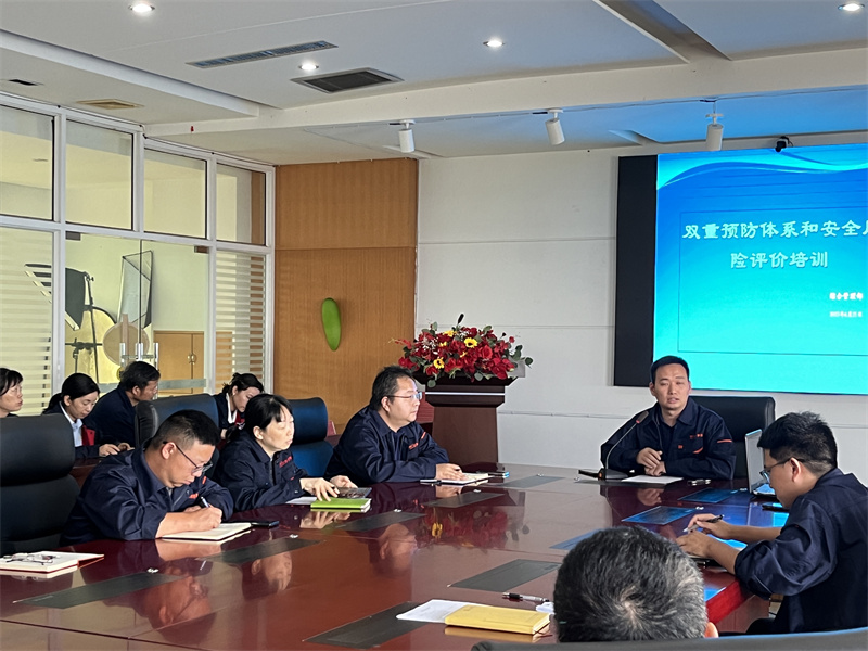 公司钟卫平经理针对两个体系及安全评价内容进行重点的解析。主要讲解了两个体系建设的主要内容,风险点确定,危险源辨识,风险评价,制定防控措施,分级管控落地,隐患排查治理,问题与体会八项内容,切实使员工了解了双重预防体系及安全评价的具体内容。