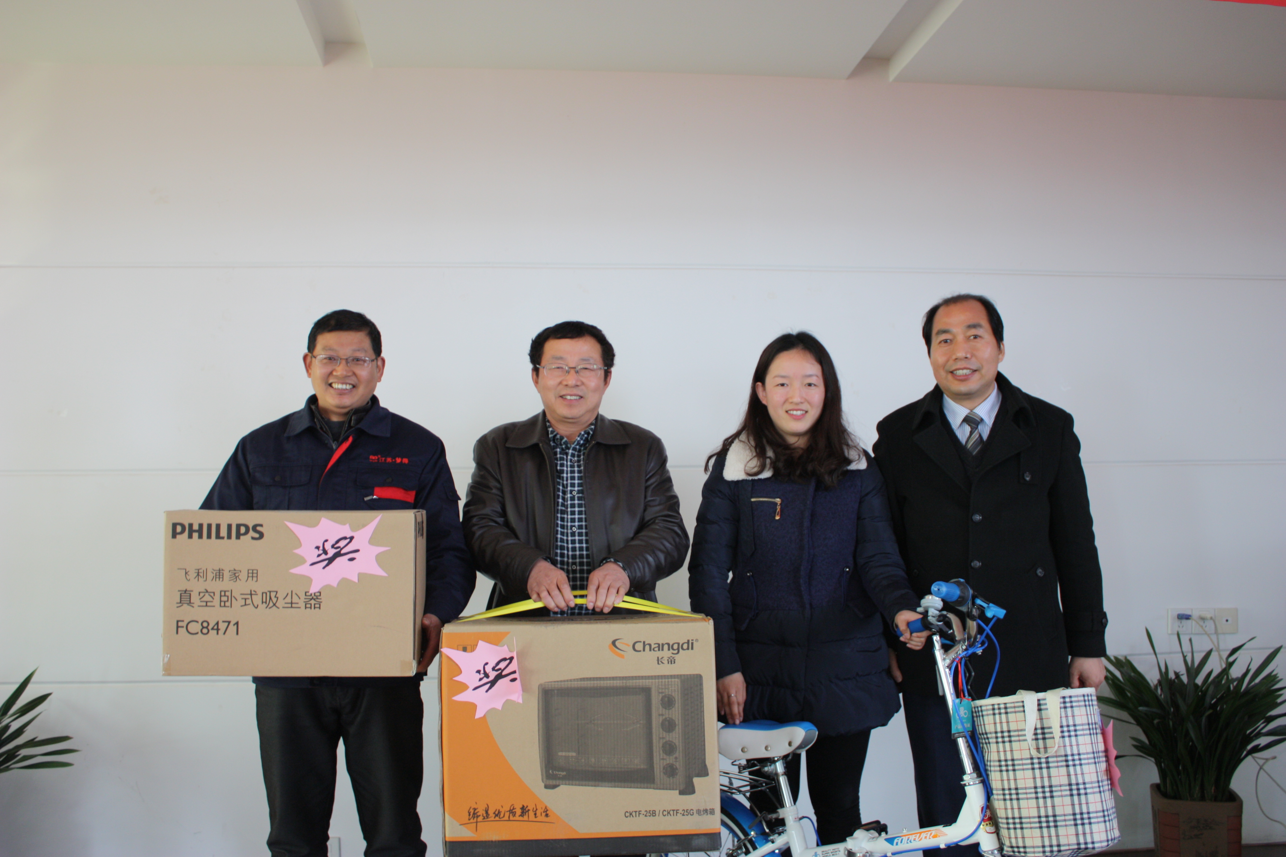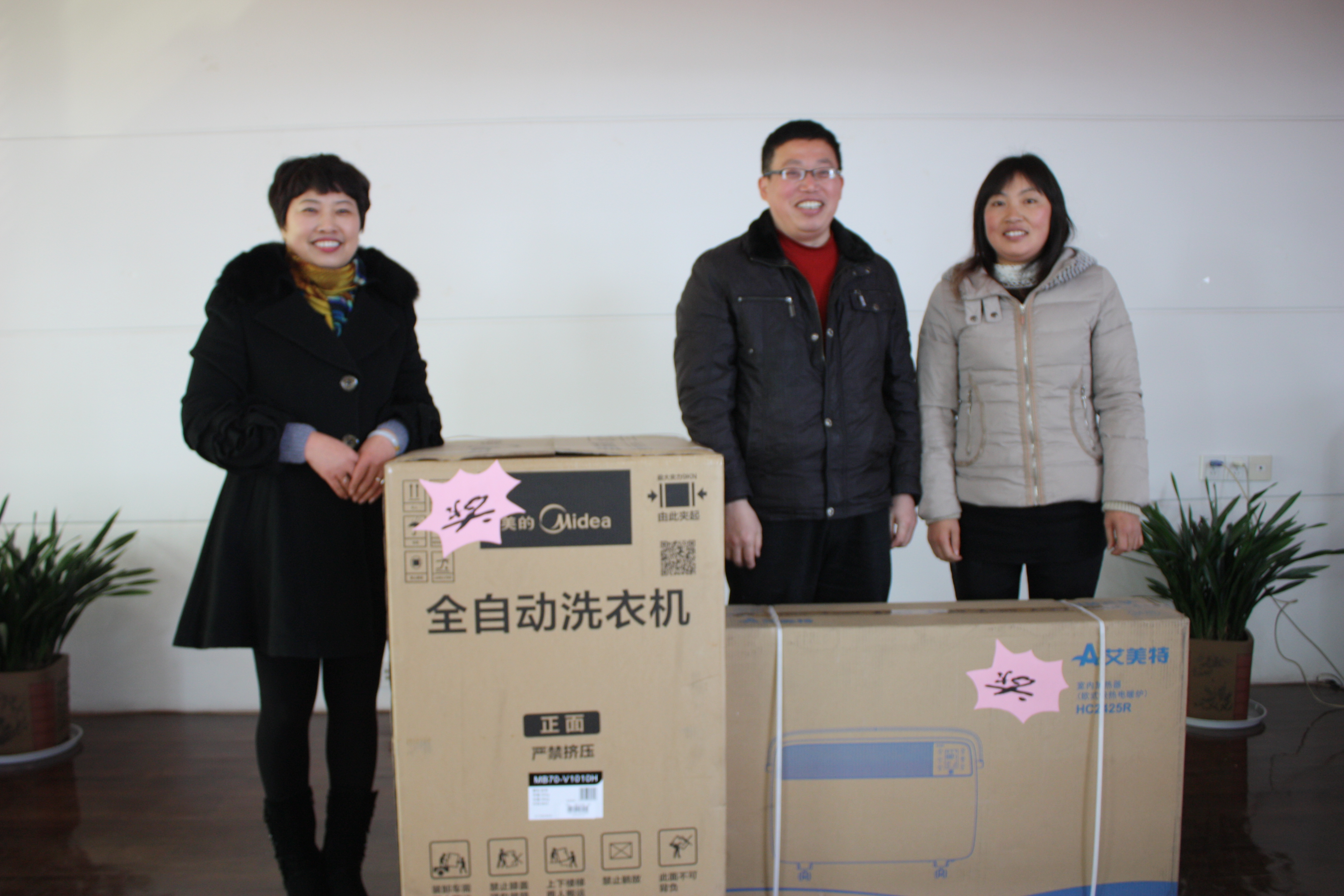 随后,大会现场的抽奖活动和同时进行的各个部门员工表演节目,现场气氛十分热烈!32寸LED电视机,洗衣机,取暖器,吸尘器,烤箱,自行车,电磁炉,床上四件套等大奖均被幸运员工抽取,并由杭总,贡总亲自颁发!所有与会员工都是满载而归,大会在一片欢快的氛围中结束。
