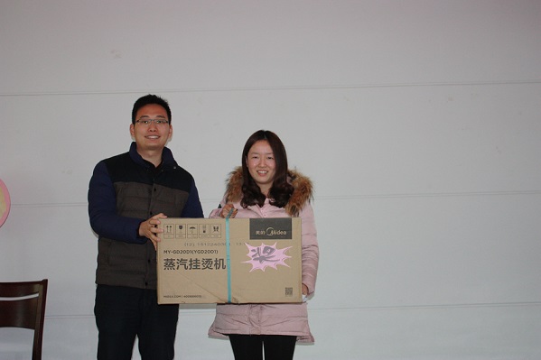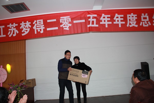 随后,大会现场的抽奖活动和同时进行的各个部门员工表演节目,现场气氛十分热烈!华为4G智能手机,全自动豆浆机,蒸汽挂烫机,空气净化器,吸尘器,电磁炉炒锅,坚果大礼盒,今年还有我们公司顾问李万红老师带来的3份特别奖项--猴年纪念币等大奖均被幸运员工抽取,并由杭总,贡总亲自颁发!所有与会员工都是满载而归,大会在一片欢快的氛围中结束。