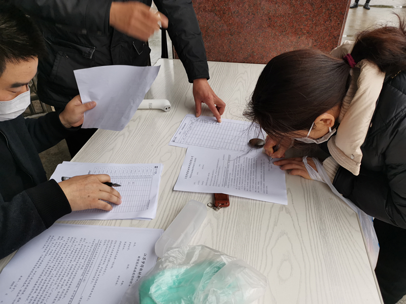 特殊的春节,特殊的开工日,没有了以往的团拜会,早上七点半开始,在公司入口,复工的员工们开始排队入厂,2名工作人员逐个对进厂员工登记、测量体温、签承诺书。公司总经理表示,任何在职人员都必须配合公司的三道防疫工序,一是每天两次测量体温,二是全天佩戴口罩等防护物品,无重要事件禁止员工之间串岗集聚,三是在岗员工全部实行分餐制。此外,各部门加强学习了公司疫情防护培训手册,制定了完善的分工,有专门的工作人员会在厂区内每天杀毒消毒。公司一手抓疫情防控,一手抓恢复生产,确保全流程安全可控!