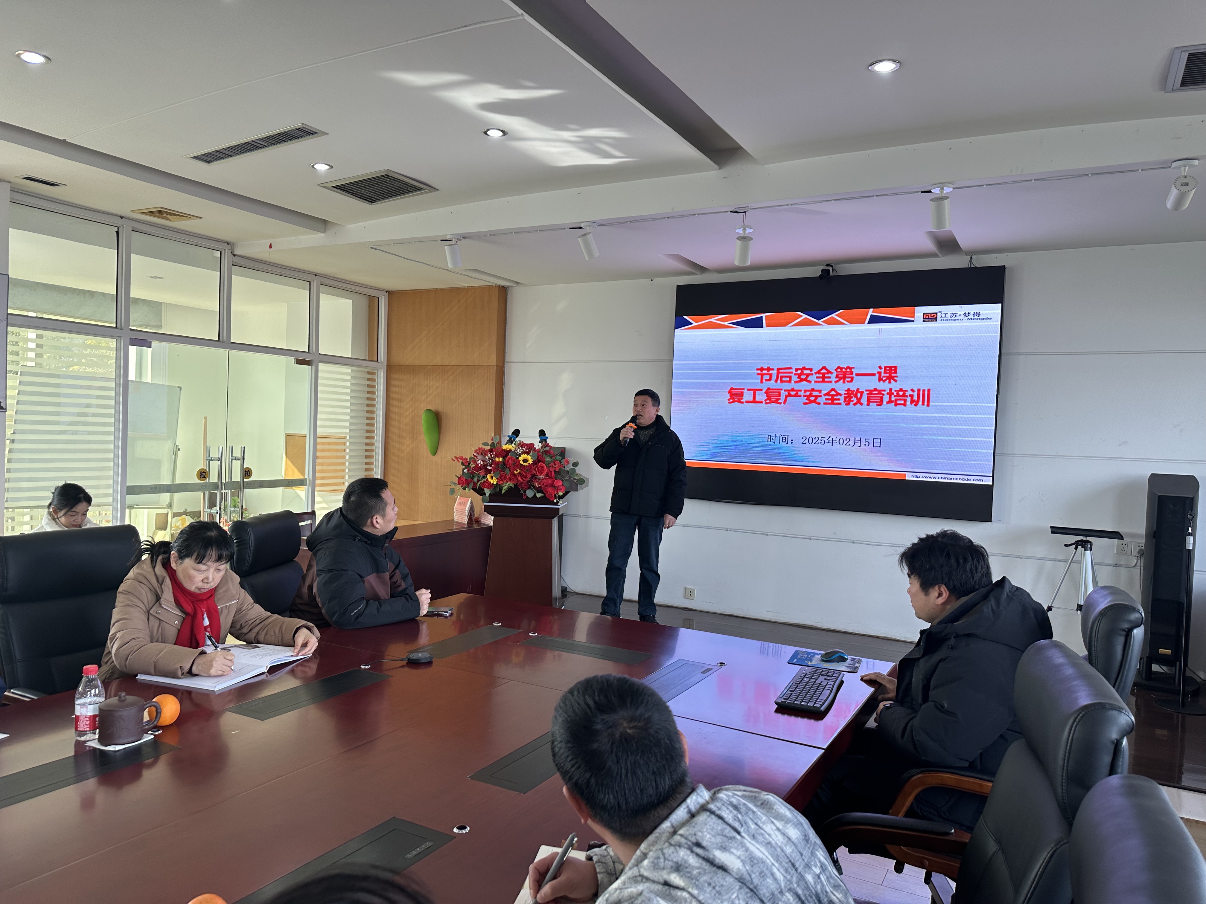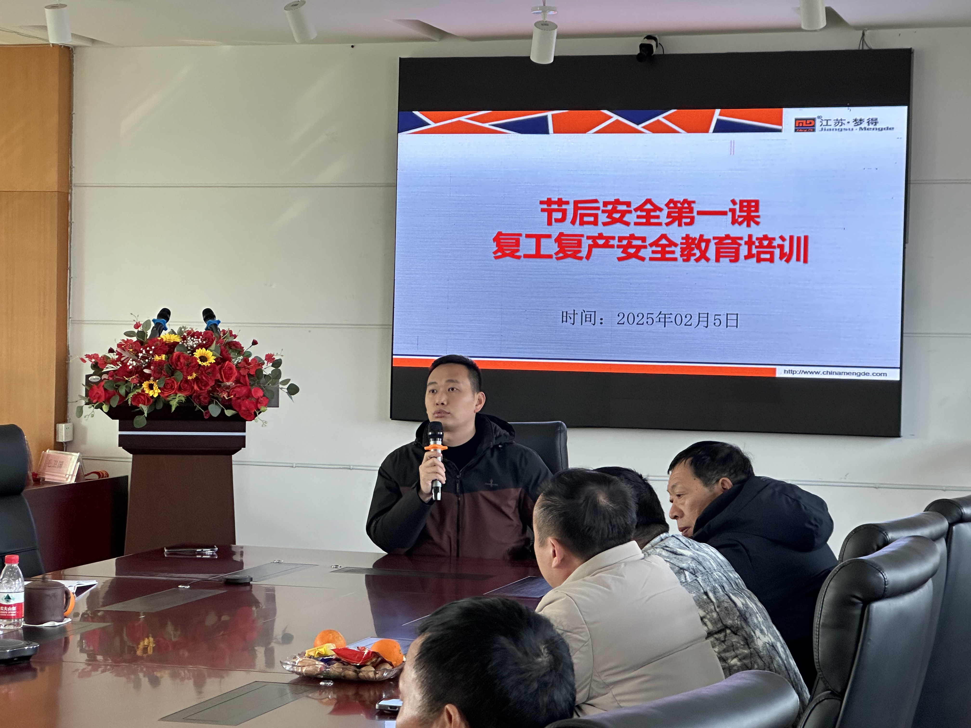 随着社会的快速发展和工业化进程的加速,安全生产已成为企业乃至全社会关注的焦点。为提高全体员工的安全意识和安全技能,确保企业生产活动的安全稳定,江苏梦得新材料科技有限公司于2025年2月5日上午,在总部三楼会议室召开了以“复工复产,安全教育”为主题的节后安全第一课。