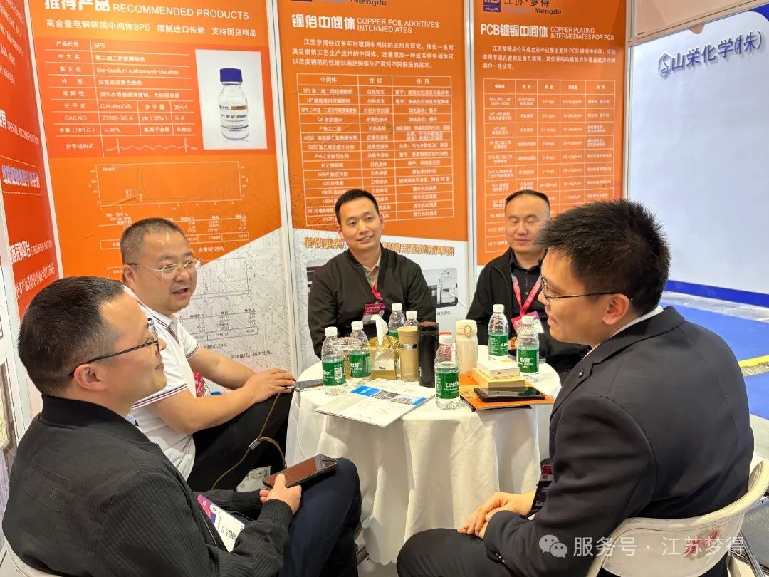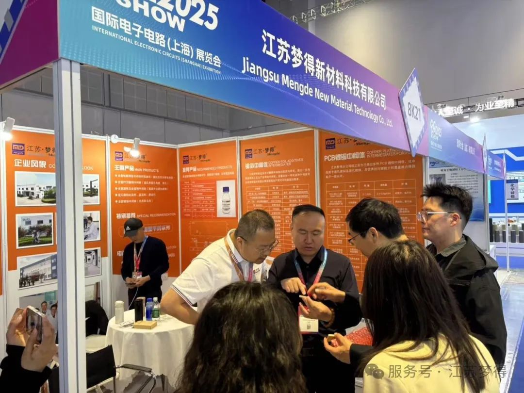 展会期间,江苏梦得新材料科技有限公司的展位吸引了众多专业观众与行业人士的驻足。我们展示了公司在电镀新材料研发、电镀添加剂生产与销售等领域的创新成果,包括具有行业领先水平的晶粒细化剂与整平剂结合产物,在电镀工艺多个环节有着出色表现的产品,如在线路板镀铜工艺中提高镀液分散性能、促进铜优先沉积在铜孔中间;在电镀硬铜工艺中显著提升镀层硬度;在电解铜箔工艺中作为高抗剂提高铜箔抗拉强度 。这些产品凭借其卓越的性能和可靠的质量,受到了现场观众的高度关注与认可,众多客户表达了进一步合作的意向,期待在未来共同开拓市场。