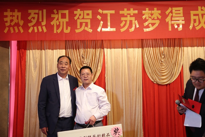 11点30分,江苏梦得20周年庆典宴会在丹阳市开发区东方会馆举行。宴会在杭冬良董事长的祝酒辞中正式开始。开场舞是由梦得的青春代给大家带来一段抓钱舞,美妙的身姿,整齐舞步,给人以巨大的视觉冲击;后面还有诗朗诵、杭康总经理及其夫人的对唱、梦得生产部的大合唱都给大家带来了欢乐。其间,武汉风帆领导的王琢林先生也受邀上台高歌一曲,掌声雷动。节目表演的中间还穿插着这种大奖的抽取,宾客们尽兴而归。