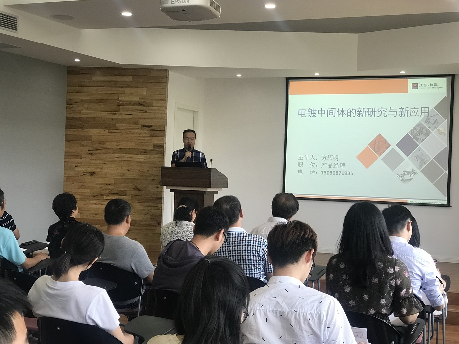 午后,梦得公司产品经理方辉明先生为大家带来电镀中间体的“新研究与新应用”主题报告。报告中详细讲解了梦得公司经过多年努力研发,成功开发出了多种新产品、新工艺,并提升了产品的性能,拓宽了产品的应用领域。
