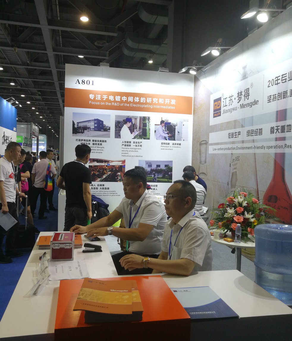 2019第十三届国际(广州)表面处理电镀涂装展览会已于5月21日在广州(琶洲)保利世贸博览馆盛大开幕。梦得公司总经理杭康先生带领梦得精英团队携最新研发的镀铜中间体、镀镍中间体参加此次展会。