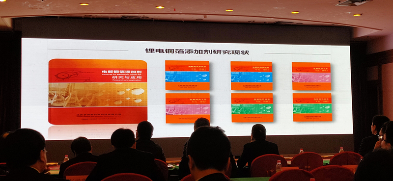在22日大会期间,公司总经理杭康先生发表主题为《电解铜箔添加剂研究现状与发展趋势》报告,将公司用于锂电铜箔电解中间体原理及性能向大会作了很详细的报告,并介绍了公司汇编的技术书籍,与会代表对公司高抗拉锂电箔添加剂及多孔铜箔的研发进展以及汇编的技术书籍表现出了浓厚的兴趣。