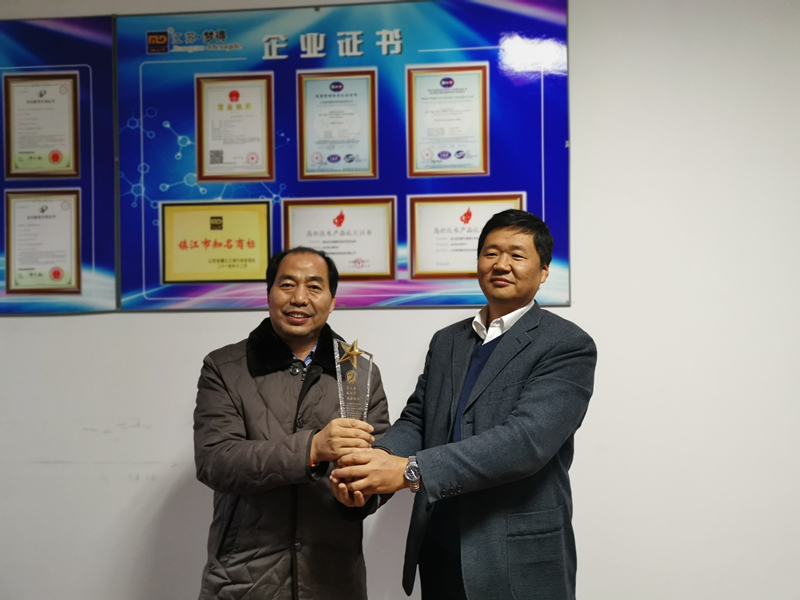 为大力实施公民道德建设工程,进一步推进社会诚信建设,镇江市委宣传部、市文明办、市发改委、市市场监管局、市信用办、市工商联、市消协、市民营经济协会联合开展了第三届镇江市“诚信之星”“诚信标兵”评选活动,经过一年的评审考察,公司董事长杭冬良先生荣获丹阳地区唯一一位“诚信标兵”荣誉称号。2020年12月14日,丹阳市市场监督管理局相关领导一行来到公司,将“诚信标兵”奖杯授予杭董事长。