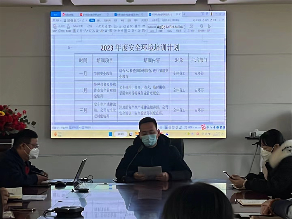 杭康总经理就2023年度安全环境培训计划做了详细介绍,阐述了2023年度安全环境月度课程培训项目、内容及目的。使全体员工认识到安全生产、环境保护的重要性、必要性,牢固树立起“安全第一,预防为主”的思想,不断提高安全生产素质、管理水平和操作技能,确保安全生产。