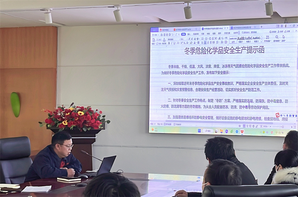 公司陆工结合5S检查和隐患排查,对员工进行了节前安全教育培训。针对《冬季危险化学品安全生产提示函》展开详细说明,切实使员工了解各项细则。