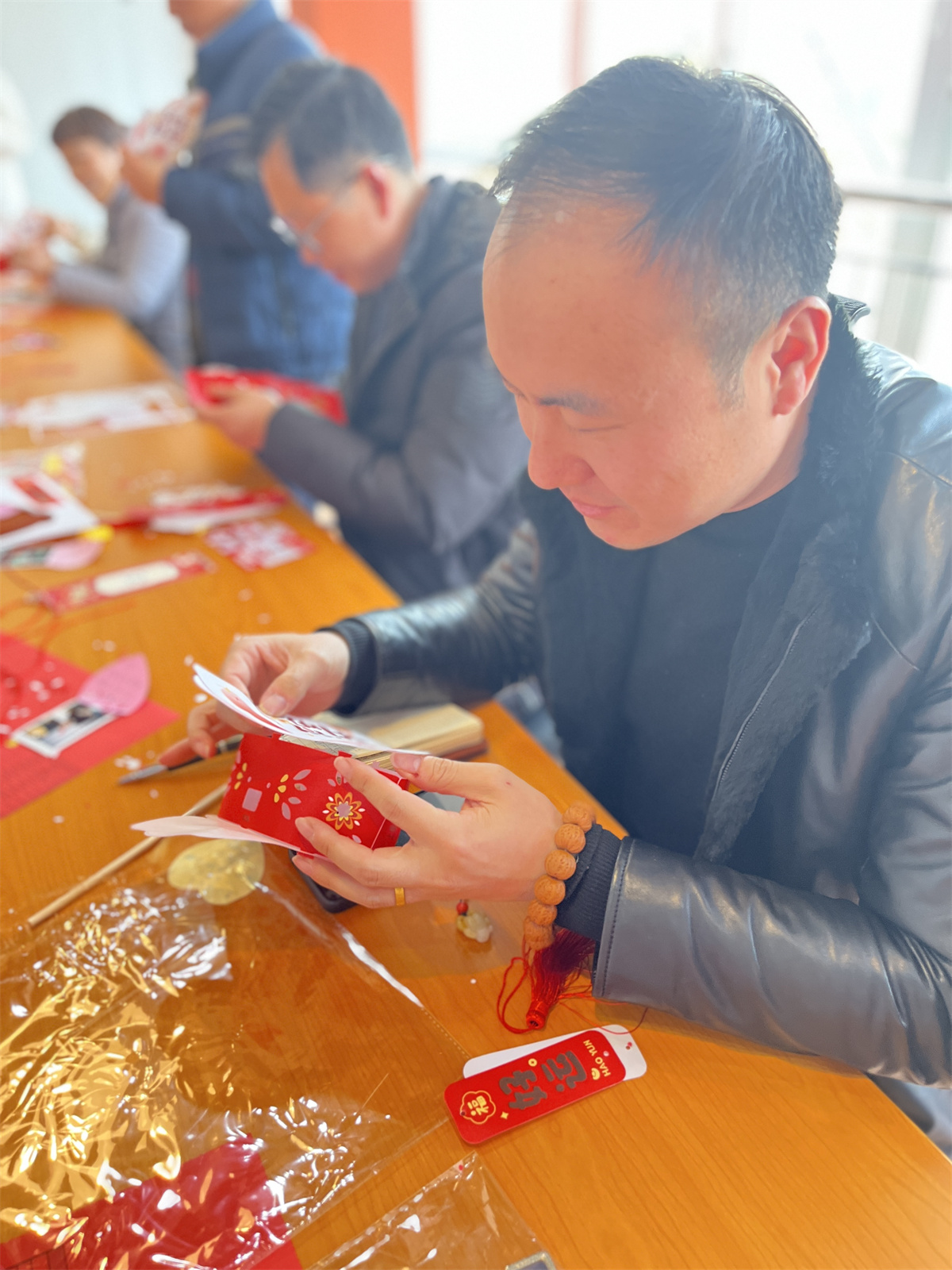 活动现场,大家欢聚在一起猜灯谜。我帮你出出主意,你帮我验证一下答案,大家携手,很快就将灯谜全部猜出,仿佛找到了儿时的回忆。