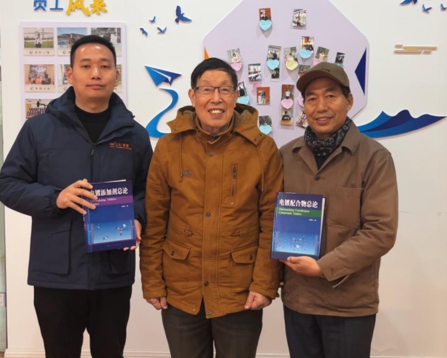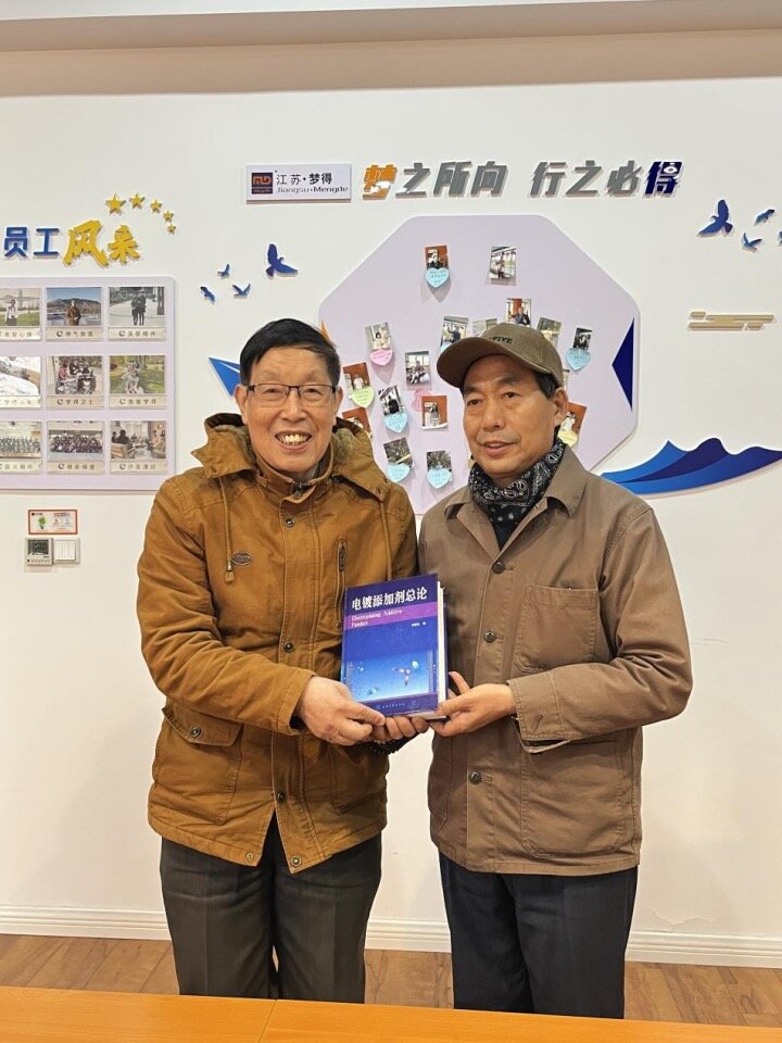 赠书环节,崭新的书籍《电镀添加剂总论》《电镀配合物总论》传递到杭冬良董事长的手中,像是递出一把开启智慧宝库的钥匙。方景礼教授还亲切寄语,鼓励大家用知识武装头脑,突破技术瓶颈;杭冬良董事长也表示,知识是企业腾飞的隐形翅膀,期望全员借此契机提升自我。